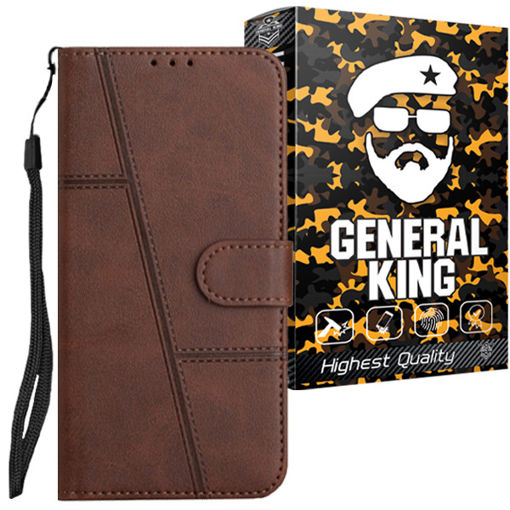 کیف چرمی کلاسوری ژنرال کینگ از چرم و TPU باکیفیت ساخته شده است که می توانید برای نگهداری ایمن و زیبای گوشی خود از آن استفاده نمایید. اولین نکته که هنگام باز کردن درب کیف متوجه آن می شویم، وجود بندی با دکمه ی آهن ربایی است که به محکم بسته شدن آن کمک می کند و از محتویات داخل کیف به بهترین شکل مراقبت میکند. این طراحی مدرن در قالبی از جنس و مواد با کیفیت به شما کمک می کند تا تمام لوازم ضروری خود مانند گوشی، پول نقد و کارت های اعتباری خود را در کیف چرمی بسیار خوش دست و زیبا در اختیار داشته باشید. دورتادور این قاب منعطف بوده و گوشی به راحتی داخل قابی که روی کیف وجود دارد قرار میگرد. این قاب به طور کامل بدنه ی گوشی را می پوشاند البته محل پورتها و دوربین به دقت برش خورده است و حتی برای شارژ نیازی به بیرون آوردن گوشی از کاور وجود ندارد. همچنین در قسمت کناری کیف، بند مچی ای تعبیه شده باعث جلوگیری از سقوط ناگهانی گوشی و یا سرقت آن می شود. یکی دیگر از امکانات این کیف کلاسوری ژنرال کینگ قابلیت استند شدن آن است که میتوانید در این صورت توسط درب کیف، کیف را تبدیل به استند کرده و گوشی را روی سطح صاف مانند میز قرار داده وبه تماشای موزیک ویدئو یا فیلم بپردازید.