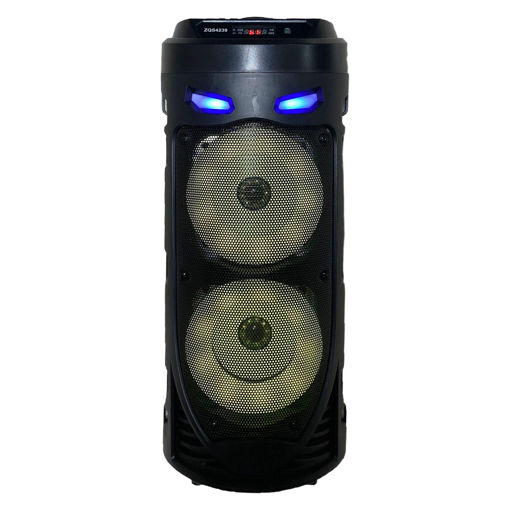 اسپیکر چمدانی بی سیم و قابل حمل مدل ZQS-4239 همراه میکروفن وایرلس و ریموت کنترل میباشد ابعاد اسپیکر40x20x20 سانتیمتر -بدنه محکم از مواد مرغوب ساخته شده است که مقاومت بالایی در برابر آسیب هایی نظیر ضربه و فشار از خود نشان میدهد این اسپیکر از کیفیت پخش صدای قدرتمندی برای جشن ها و مهمانی ها به خصوص در محیط باز و شلوغ برخوردار میباشد -درایو قدرتمند 12 اینچی این پارت باکس با توان خروجی معادل 1800 وات همچنان دارای نور پردازی داخلی در هنگام پخش موسیقی میباشد نمایشگر LED وپنلی از دکمه های فیزیکی جهت مدیریت موسیقی ؛ تنظیم ولوم ونور…. بر روی بدنه تعبیه شده ویک ریموت کنترل نیز همراه آن قرار دارد تا از راه دور این تنظیمات نیز برای کاربر امکان پذیر باشد- شارژ مجدد باتری نیز به وسیله آداپتور مخصوص قابل انجام میباشد ورودی شامل USB-AUX-BLUETOOTHمیباشد.