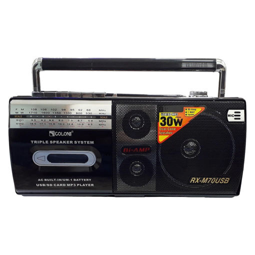 رادیوضبط و اسپیکر گولون مدل RX-M79USB به نظر می رسد با انگیزه آشناکردن نسل جدید با آنچه در گذشته مرسوم بوده طراحی و تولید شده است و همچنین افزودن امکانات روز پخش موسیقی از طریق حافظه های الکترونیکی ، ترکیب جالبی ایجاد کرده و با ایجاد پلی بین گذشته نسبتا" دور و اکنون ، هر کسی را مجذوب خود می کند هرچند نوار کاست دیگر مرسوم نبوده و بسختی در دسترس است اما برای نسل کمی قدیمی تر بسیار نوستالژیک بوده و نوار های کاست قدیمی آنها را راه می اندازد و آنها را به زمانهای دور می برد. کیفیت صدای خروجی دستگاه بدلیل استفاده از 3 بلندگو برای پخش محدوده وسیعی از فرکانس ها ، مناسب است. دستگاه به یک رادیوی 3 باند با کیفیت و حساسیت مناسب نیز تجهیز شده است که تنظیم ایستگاه آن کاملا آنالوگ بوده ، با پیچاندن یک گردانه مانند رادیو های قدیم و حرکت شاخص بر روی پنل دستگاه انجام می شود . قابل ذکر است که ولوم کوچک در زیر تنظیم کننده ایستگاه رادیو بطور نمایشی بوده و نمی چرخد و برای زیبایی افزوده شده است .تغذیه دستگاه با برق و باتری صورت می گیرد .سیم دوشاخه دستگاه در محفظه باتری قرار داده شده است.