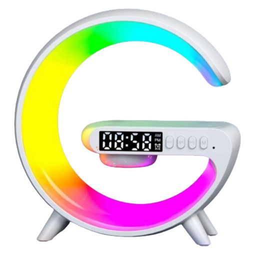 این اسپیکر طرح G شکل 7 مدل رنگ چراغ دارد که نور طبیعی دارند و چشم های شما را اذیت نمی کنند. ساعت نمایش دیجیتالی رو صفحه این اسپیکر قابلیت تنظیم دارد و می توانید به عنوان آلارم نیز از آن استفاده کنید. این اسپیکر بلوتوثی است و قابلیت استفاده از اپلیکیشن خود را نیز دارد. مهم ترین قسمت این اسپکیر شارژ وایرلس آن است. هر چیزی اعم از موبایل، ایرپاد و ... که دارای وایرلس شارژ هستند می توانید در هنگام اتصال به برق از وایرلس آن نیز بهره مند شوید. در قسمت G شکل همانند عکس می توانید گوشی و ... خود را شارژ کنید.
