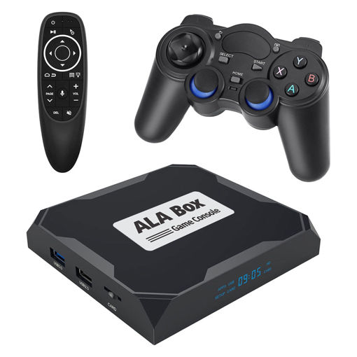 کنسول بازی آلاباکس شامل یک کنسول اندرویدی، یک دسته بازی بی سیم و یک ایرماوس است. این کنسول با داشتن سیستم عامل اندروید میتواند هزاران بازی اندرویدی را با کیفیت فوق العاده 8K بر روی مانیتور و یا تلویزیون شما اجرا نماید. کنسول بازی آلاباکس از قویترین پردازنده (Amlogic S905x) موجود در بازار استفاده مینماید و از حافظه رم 4 گیگابایت و حافظه داخلی 64 گیگابایت بهره می برد. این کنسول دارای دو درگاه USB2.0 و USB3.0 است و از کارت حافظه microSD تا ظرفیت 128 گیگابایت پشتیبانی مینماید. همچنین برای پخش با کیفیت صدای خروجی دستگاه یک پورت AV و یک پورت اپتیکال بر روی بدنه آلاباکس جانمایی شده است. برای راحتی کار یک Airmouse فوق العاده با نور پس زمینه همراه کنسول وجود دارد که با تکان دادن مچ دست نشانگر موس روی صفحه تلویزیون حرکت میکند. همگام سازی دسته و کنسول با استفاده از دانگل USB میباشد.