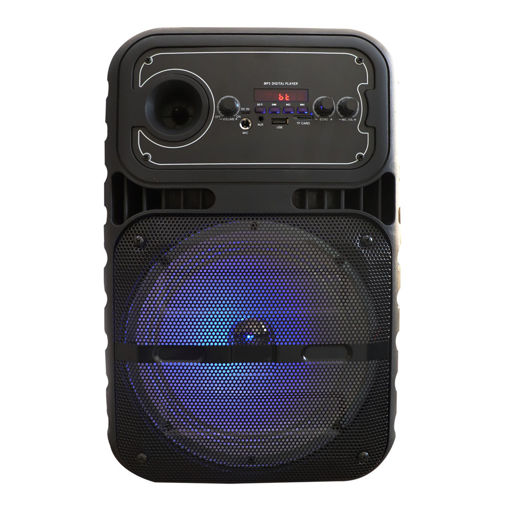اگر به دنبال اسپیکر به همراه میکروفون هستید، اسپیکر JBK-0808 یکی از گزینههایتان است. این اسپیکر کیفیت بالایی داشته و میتوانید برای اجرای زنده یا مراسم از آن استفاده کنید. این مدل دستگیره تلسکوپی داشته و میتوانید آن را به صورت چمدانی جابهجا کنید. با توجه به ابعاد این مدل وزن استانداردی دارد. این مدل از طریق USB، شیار کارت حافظه و جک 3.5 میلیمتری قابلیت پخش موسیقی از دستگاه یا فلش را به شما میدهد. در قسمت جلویی این اسپیکر از نورپردازی استفادهشده است. در محیطهای تاریک این نورپردازی میتوان فضایتان را زیباتر کند. در قسمت زیر این مدل حفرهای تعبیهشده تا در صورت تمایل اسپیکر را روی پایه قرار دهید. میکروفون استفاده شده برای این قابلیت اتصال بیسیم را دارد. این ویژگی باعث شده تا شعاع عملکردتان افزایش یابد.