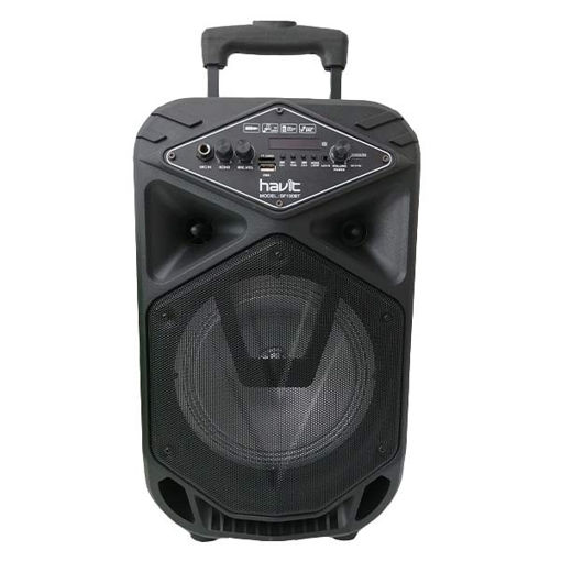 اسپیکر بلوتوث چمدانی هویت مدل HV-SF100BT به صورت بی سیم از طریق بلوتوث به موبایل، تبلت و دستگاه های دیگر متصل شده و دارای یک شیار کارت حافظه جهت اتصال مموری و درگاه 3.5 میلی متری جهت اتصال با کابل AUX می باشد. همچنین این اسپیکر از پورت USB برای اتصال فلش مموری پشتیبانی می کند.