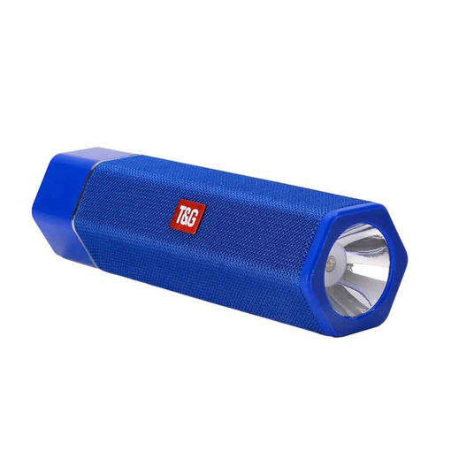 اسپیکر وایرلس T&G مدل TG603 چراغ قوه دار یک اسپیکر به شکل شش ضلعی است که در یک طرف آن بند سیلیکونی به منظور حمل آسان تعبیه شده است و در طرف دیگر آن یک چراغ قوه بسیار پرنور که در سفر ها و مواقع اضطراری بسیار کاربردی می باشد. این اسپیکر دارای یک باتری 1200 میلی آمپر ساعت می باشد که در حالت فول شارژ حدود 2 ساعت امکان پخش موسیقی را دارد. بر روی بدنه محصول کلید های روشن/خاموش، کنترل موسیقی و چراغ قوه تعبیه شده است. این اسپیکر چند منظوره دارای پورت های AUX، میکرو یو اس بی، یو اس بی و شیار کارت حافظه می باشد که توسط یک درپوش سیلیکونی پوشانده شده اند. به همراه محصول دو کابل شارژ میکرو یو اس بی و AUX به همراه دفترچه راهنمای انگلیسی ارسال می گردد.