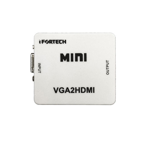 تبدیل VGA به HDMI آیفورتک مدل مینی دارای دو درگاه ورودی VGA و AUX و یک خروجی HDMI میباشد. برق این تبدیل به واسطه یک کابل یو اس بی که در بسته بندی محصول وجود دارد تامین میشود.